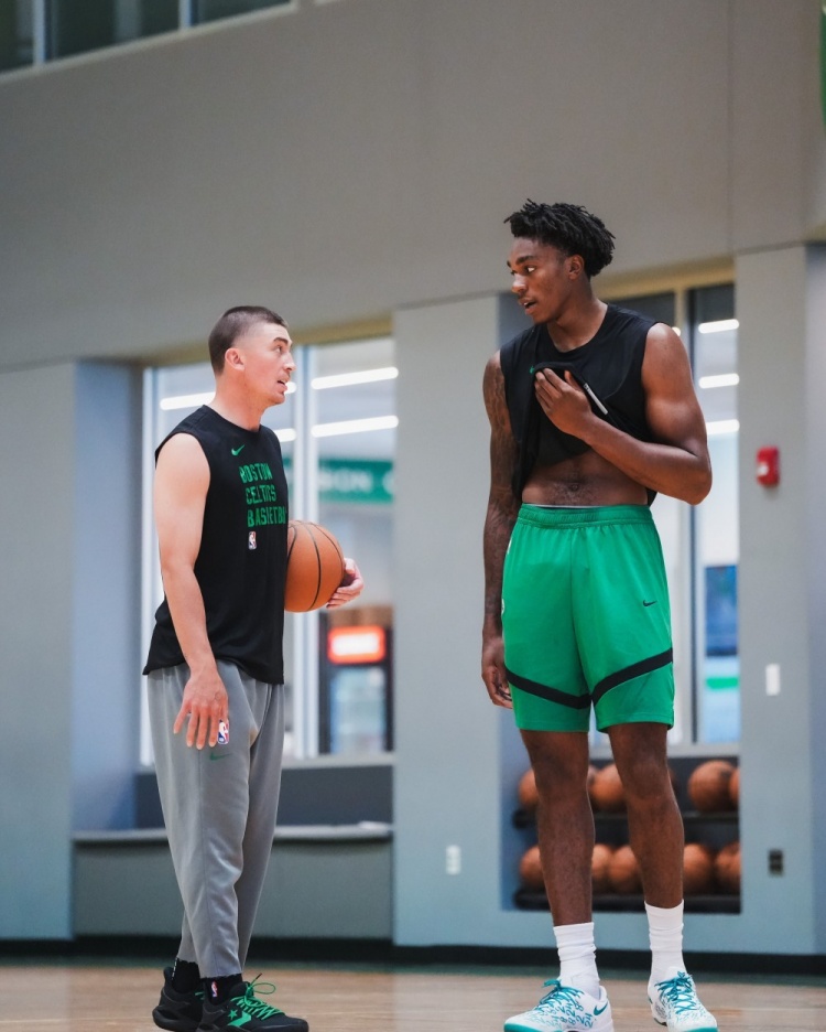 9月12日讯 今天,凯尔特人官方晒出了训练照,球队新援安芬尼-西蒙斯在列。