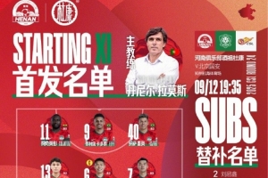 中超联赛第24轮,河南VS北京国安首发及替补队员名单